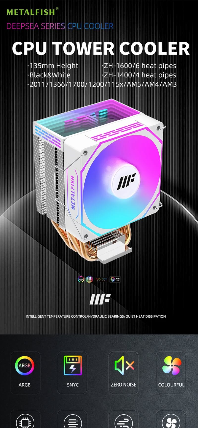 Тихий, но мощный. Легкая установка. Подходит для системников Intel 1700/1200/117x AMD AM5/AM4/AM3 1366/2011/