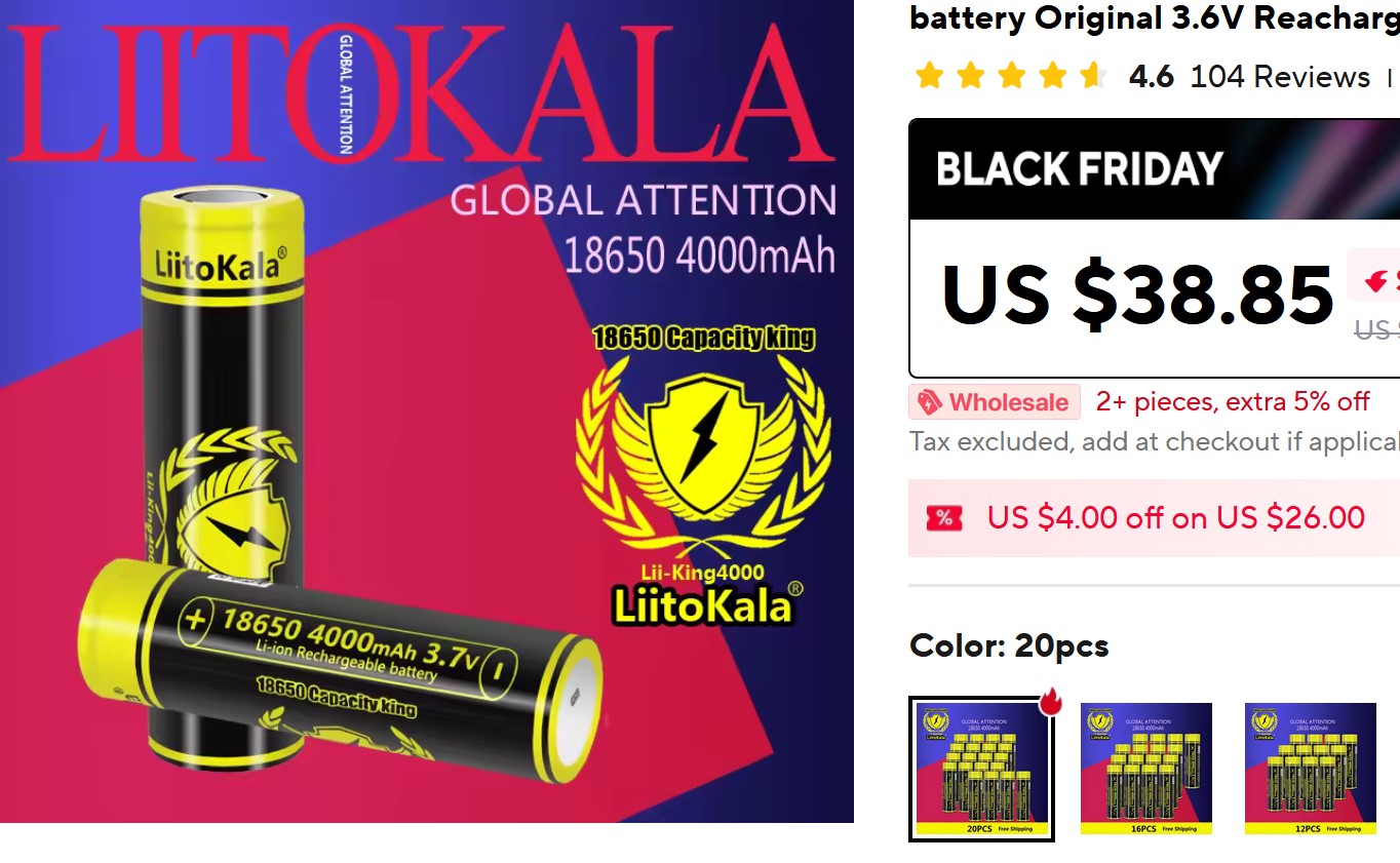На прошлой неделе рекомендовали аккумы на официальном алишном аккаунте Litokala. Решил для своего фонарика прикупить, я Зебру брал для похода в Непал еще в 2018 году, подумал, что старый аккум с тех пор немного подызносился. 😄 Взял 6 штук. А заодно взял пару пауэрбанков под элементы 18650 - на один элемент и на два. У меня есть большой пауэрбанк Anker на 20000 мАЧ, способный выдавать мощи, а эти для каких-то более мелких оказий, чтоб в карман положить. На два элемента - бокс от самой Litokala, на один - цилиндрик ноунэйм. Вот, приехало. Как работает, сказать не могу, потому что сами аккумы едут морем и пока не доехали. Но качество вроде норм. Понятия не имею, по хорошей ли цене взял или как обычно, но вот: