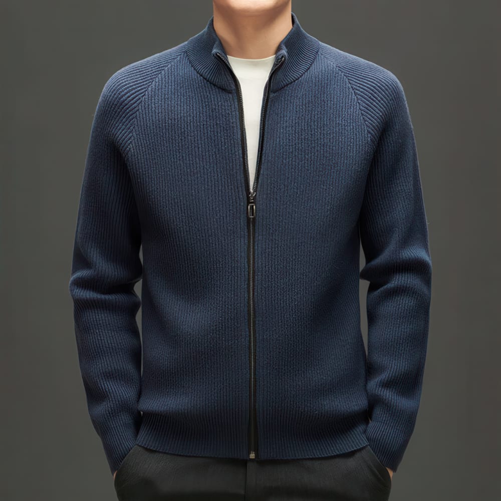 Чёткий мужской шерстяной кардиган Wintersweet (официальный магазин). Цвета: синий, кофейно-коричневый, тёмно-серый, чёрный.