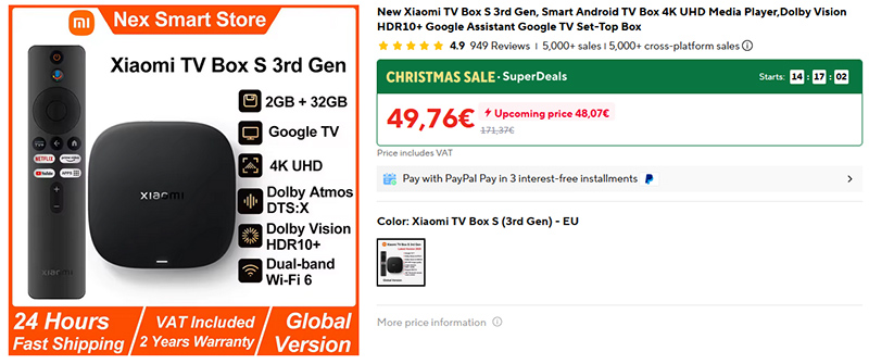 Цена на новый медиаплеер Xiaomi TV Box S 3rd Gen (мой обзор) опустилась ниже 50 евро, я его не так давно покупал за 74 евро. Напоминаю, что здесь, в отличие от большинства медиаплееров такого типа, есть поддержка Widewine L1, а это означает, что Netflix и другие стриминговые сервисы все показывают в максимально возможном для вашего плана качестве.