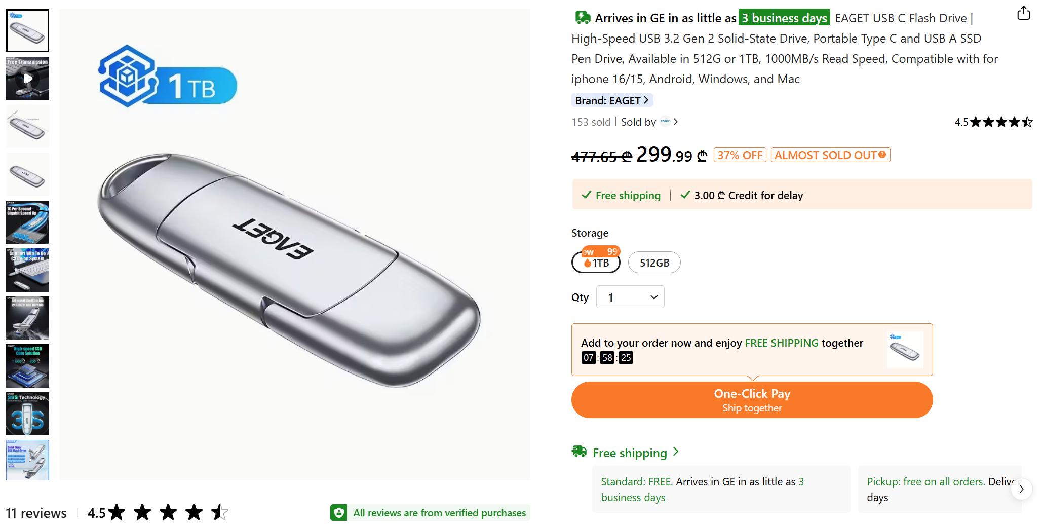 За сравнимые деньги вы бы лучше купили терабайтный SSD от известного производителя - SanDisk, например.