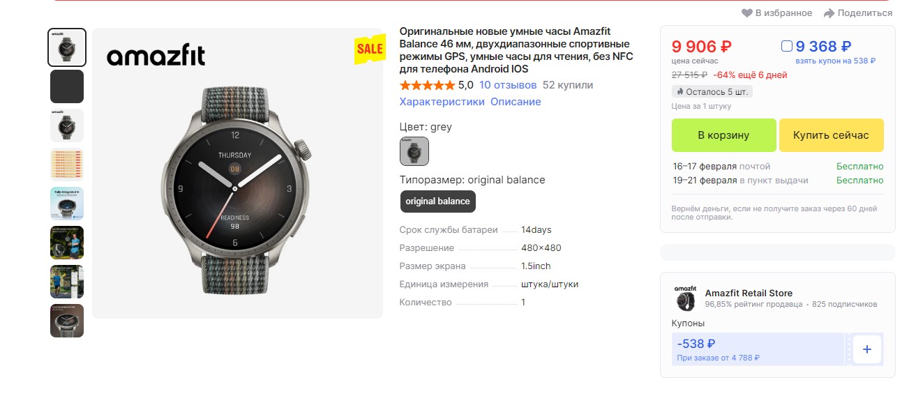 Цена: 9 368 руб., с учётом купона на 538 руб.