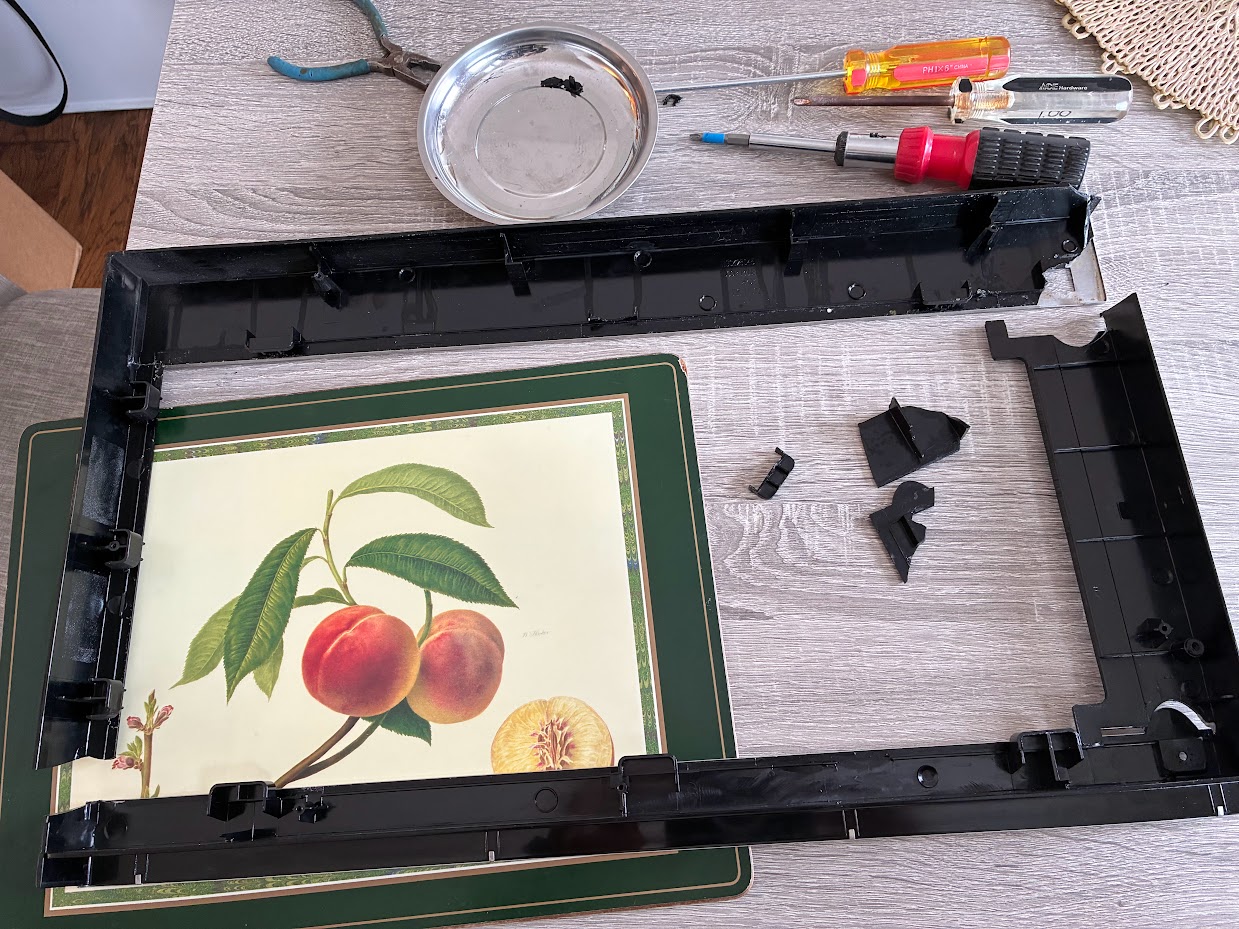 P.S. Cпасибо некоторым представителями местного клуба за практичные советы по ремонту дверцы микроволновки (на фотках - запасная рама, оригинальная после снятия и результат).