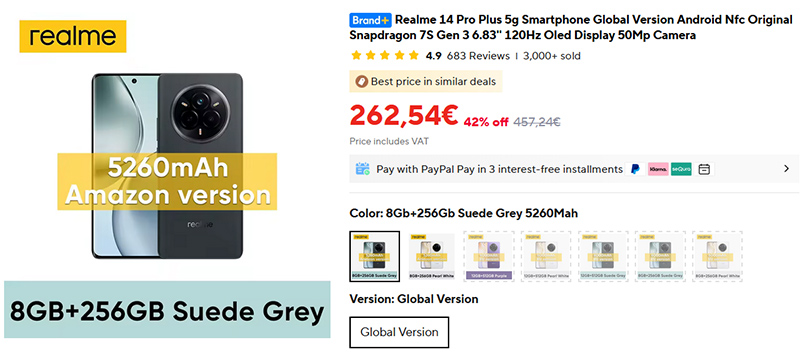 Заметно упала цена на хороший субфлагман Realme 14 Pro+ (мой обзор). Год назад на старте продаж он стоил €379, да и сейчас на Амазоне его цена - €359. Серьезная влагозащита, отличная автономность, хорошие камеры, мощная платформа.