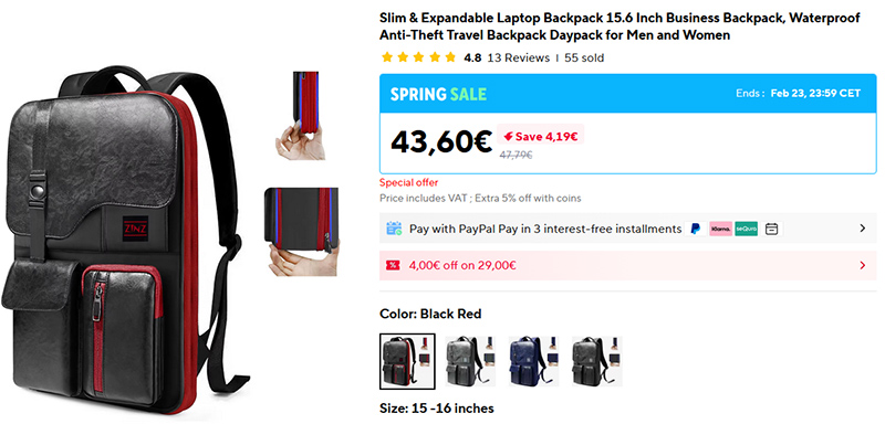 Тонкий рюкзак с большим количеством отсеков, в который поместится ноутбук до 16 дюймов. При необходимости рюкзак расширяется от размера 10,8 л до 23 литров и превращается в емкую дорожную сумку.