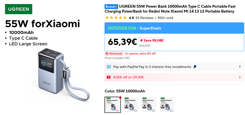 К примеру, тот же UGREEN 55W Power Bank 10000mAh на Амазоне с доставкой через 2 дня стоит $32.99, на Али показывает $81.28 Super Deal.
