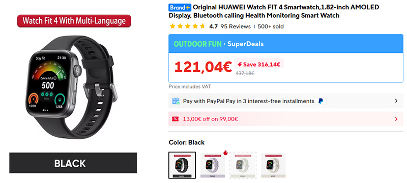 Очень хорошая цена на часы Huawei Watch FIT 4. Huawei Watch FIT 4 Pro отличаются только сапфировым стеклом и парой датчиков (температура кожи и ЭКГ), и они стоят за 200. Мне эти часы очень понравились, я делал их обзор.
