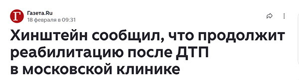 Хинштейн, рассказал Udav78, попал в ДТП в московской клинике. Видимо, участвовал в соревнованиях на каталках.