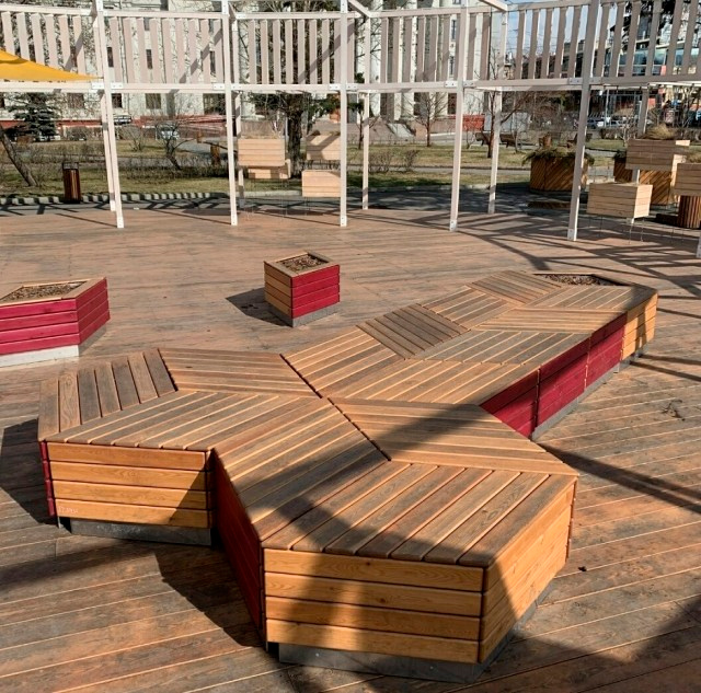 Построивший эту скамейку явно думал о чем-то своем, глубоко личном.
