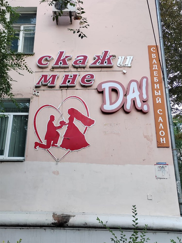 Бардухин-Пистонов не понимает, почему свадебный салон называется "Скажи мне да!". Если люди уже пришли в свадебный салон, то там однозначно уже сказано "Да", а не "Я подумаю". Вот кафе можно назвать "Скажи мне да!". Привел туда избранницу, подождал, пока она выпьет свое пиво и ей захорошеет, после чего опускайся на колени, вручи ей еще пива и попроси руки и сердца. Она посмотрит на название кафе и автоматом ответит положительно. Все логично, правильно?
