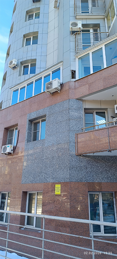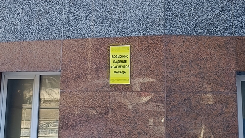 И запустили его в эксплуатацию вот с такой табличкой. Ну а что, предупрежден - значит, вооружен. Упадет кому-нибудь на голову фрагмент фасада (не дай бог, конечно) - строители не виноваты, они же предупредили, правильно?