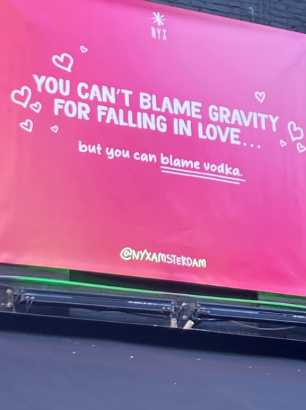 Василий прислал плакат с мудрой мыслью из Амстердама. Надпись гласит: "Нельзя винить гравитацию за то, что влюбился (дословно с английского - "падаешь в любовь")... Но можно винить водку".