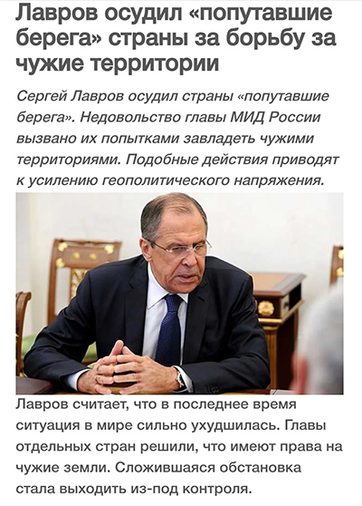 А Лавров визжит о "потерявших берега" лидерах отдельных стран, которые пытаются захватывать чужие территории. Тут, Лавров, конечно, прав на сто процентов: бункерный дедок берега очень давно потерял. Но как бы Лаврова при этом не привлекли за дискредитацию, знаете ли.