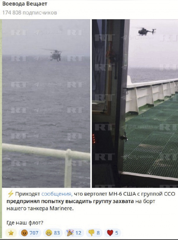 Вполне возможно, кстати, что через некоторое время Трамп снова потеплеет к "другу Вове" и снова будет ему предлагать мутить что-нибудь вместе против подлой Европы, но пока мы имеем то, что имеем. И в этом плане история показательного захвата двух мутных танкеров с поддельными российскими документами (а их там еще, насколько я понял, 14 штук таких же плавает) - она очень обнадеживающая. Похоже, что, по крайней мере на данный момент, Трамп в отношении РФ перестал, как говорит Вова Путин, сопли жевать.