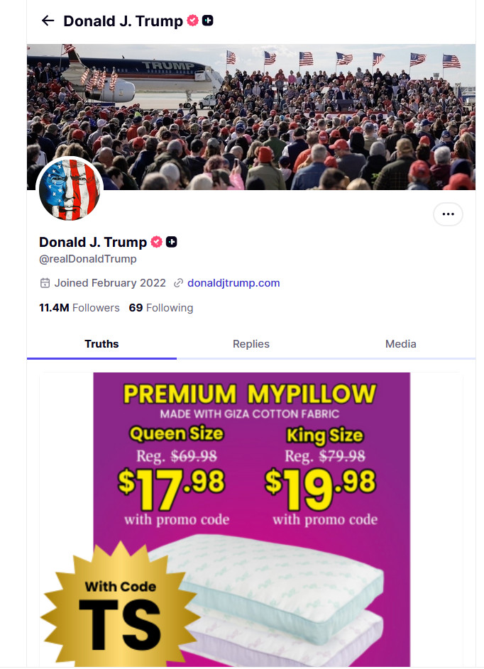 Upd: Внезапно заработало. Трамп там подушки рекламирует. Видать за дольку малую.