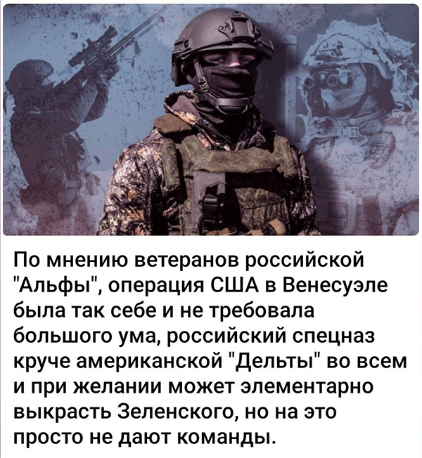 А что сделал Трамп? Заявил, что он уже "обо всем договорился" с вице-президентом Венесуэлы Делси Родригес, которая давняя подельница Мадуро, и у нее руки по локоть в крови точно так же, как и у самого Мадуро. То есть Трамп считает, что вся вертикаль власти, выстроенная Мадуро, без Мадуро вдруг начнет работать так, как ему, Трампу, надо? И с чего вдруг такая уверенность? Это все равно что похитить из РФ Путина, а потом заявить, что вся полнота власти там переходит к Патрушеву, и что он с Патрушевым "обо всем договорился".