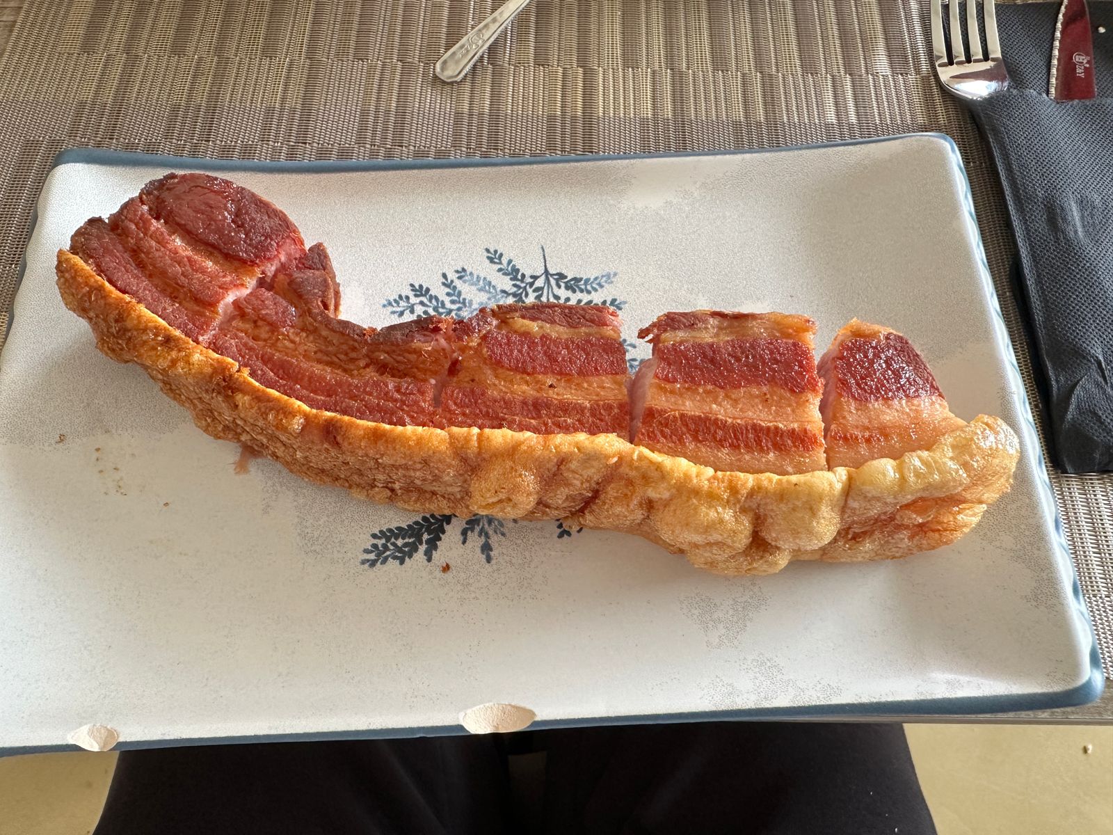 Еще из свинины очень нравятся Torreznos de Soria: куски свиной грудинки с невероятно хрустящей «пузырчатой» кожей и сочным мясом. Как одиночное блюдо не очень подходит, много жира, но он прекрасно оттесняет вкусом салат, делая вкус ярче и насыщеннее. Я пока не попробовал не знаю, что можно свинину ТАК вкусно готовить. Главный секрет — грудинка должна быть хорошо просушена, а жарка проходит в два этапа.