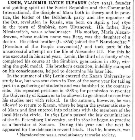 Не иначе, к 80-м британские энциклопедисты утратили это тайное знание - имя вождя мирового пролетариата. Или обрели новое, еще более тайное.