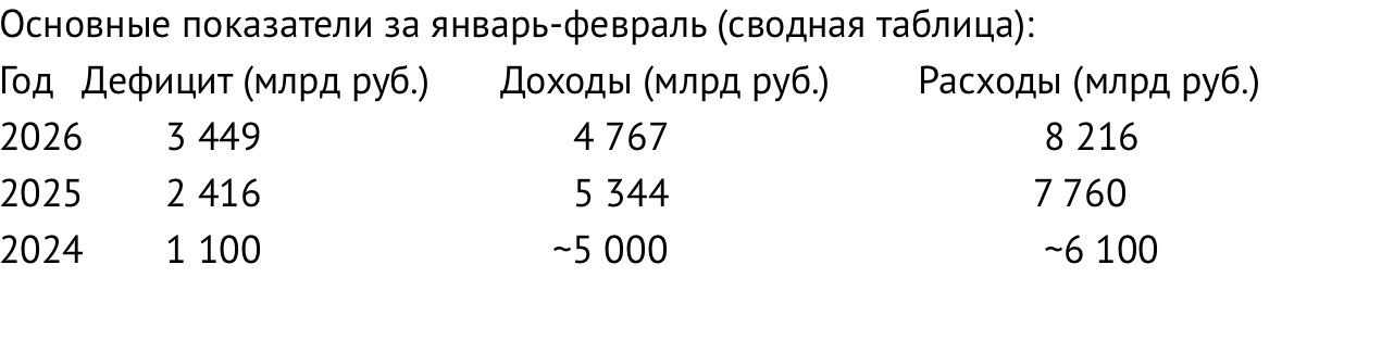 Январь-февраль 2025го. Дефицит - 2.7 триллиона рублей.