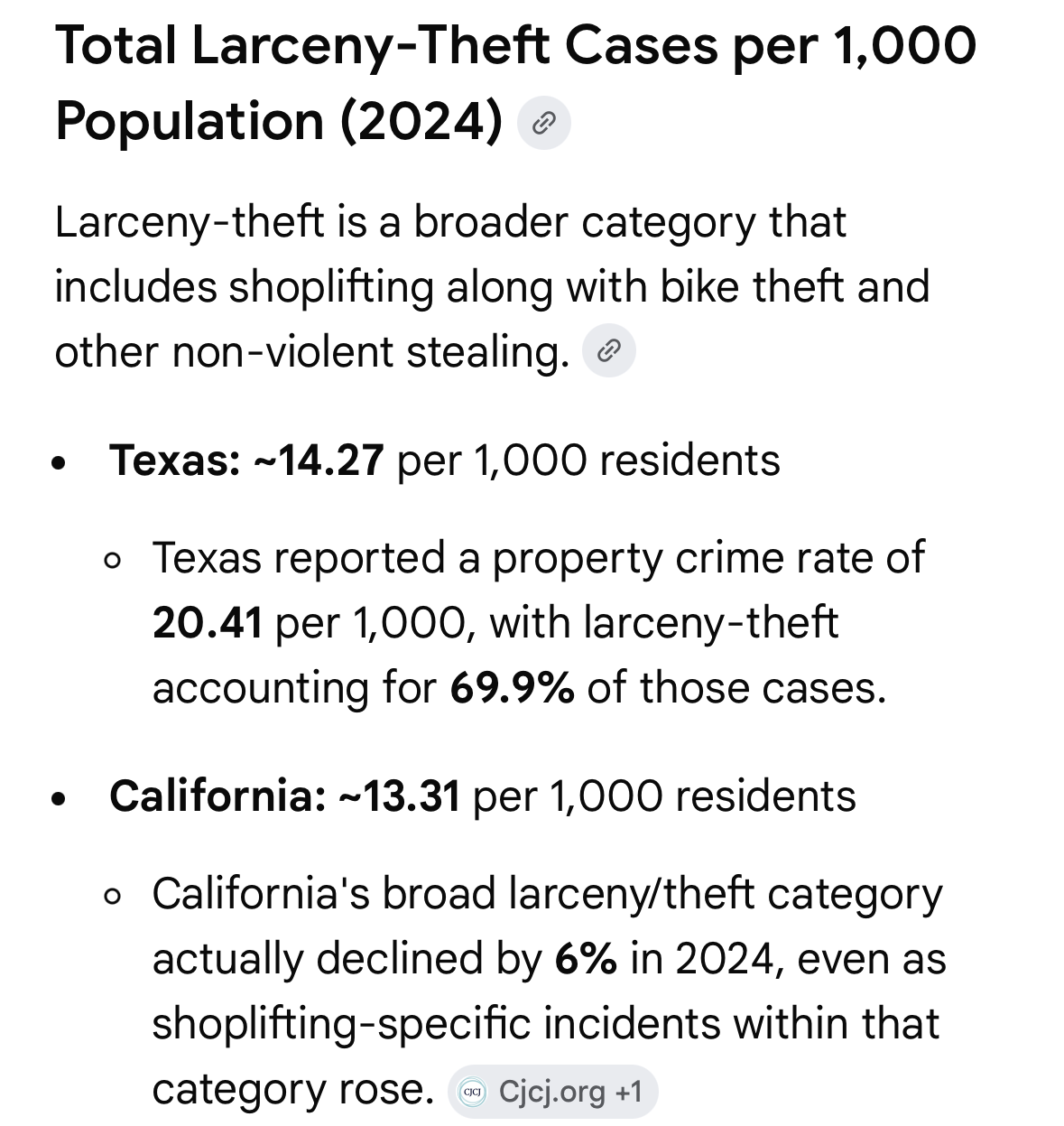 Ладно, попытаюсь объяснить - в Калифорнии кража имущества до $950 не считается криминальным преступлением. До 2024 их можно было совершать и не налетать на криминальную ответственность, даже если суммарный ущерб превышал $950. В 2024 лавочку прикрыли - теперь cчитается суммарный ущерб.