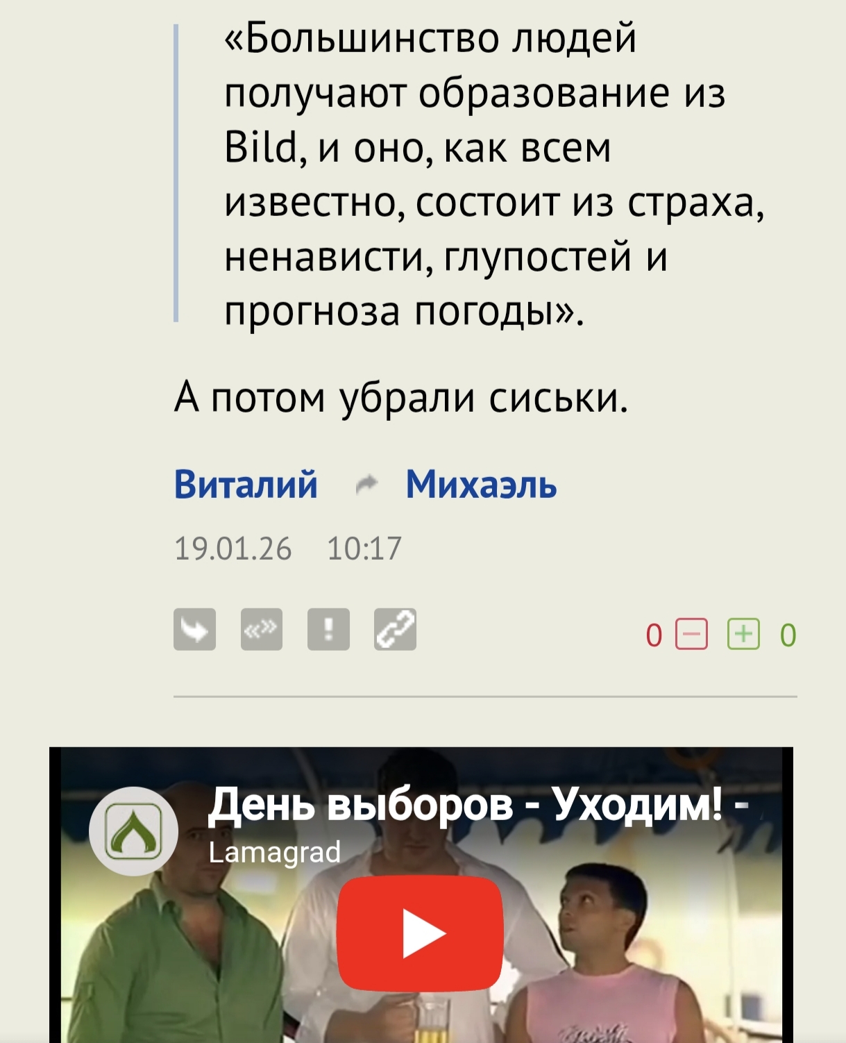 Не подкачал Борис, выступил в своём духе. Могу подсказать тебе ещё одну тему, где ты можешь высказаться, примерно так: