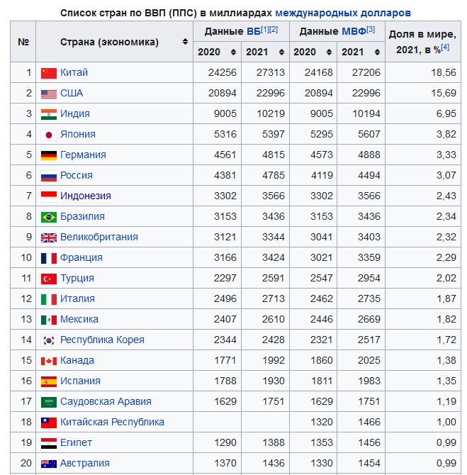 А да, и ещё любители, которые гордились высоким местом РФ по ВВП ППС, забывая разделить на население...