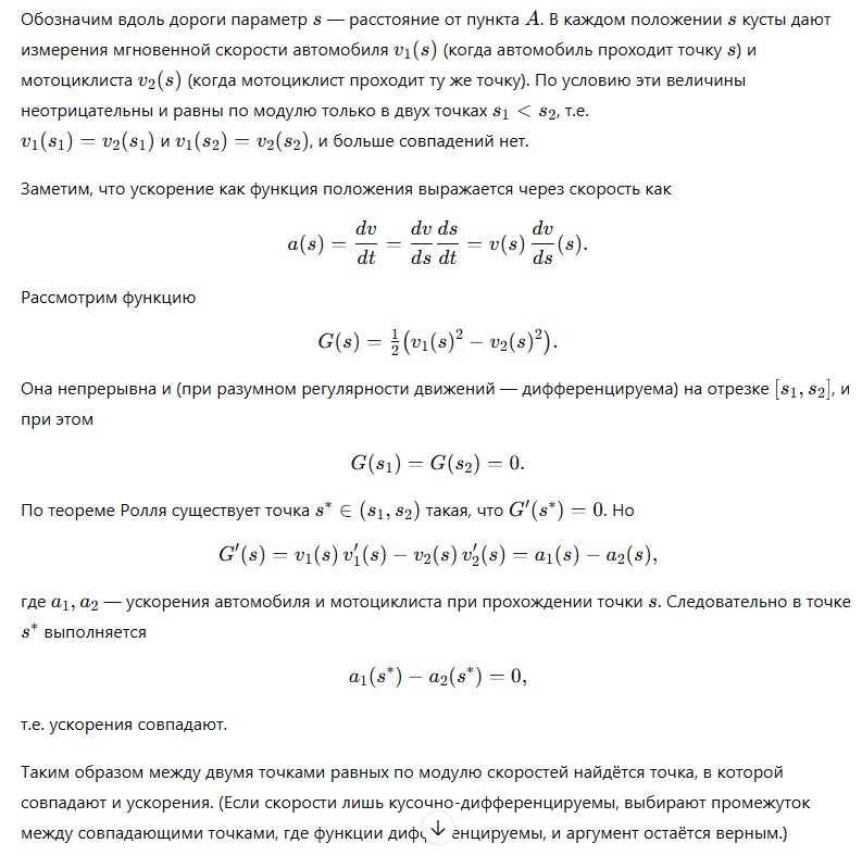 Я уж молчу о том, что хорошо бы еще уточнить, что скорости обеих машин являются аналитическими функциями (ну ладно, поскольку олимпиада по физике, а не по математике, это можно принять за данность).