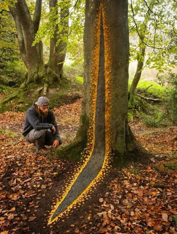 Очень красиво. А как он листья на стволе дерева укреплял, интересно?