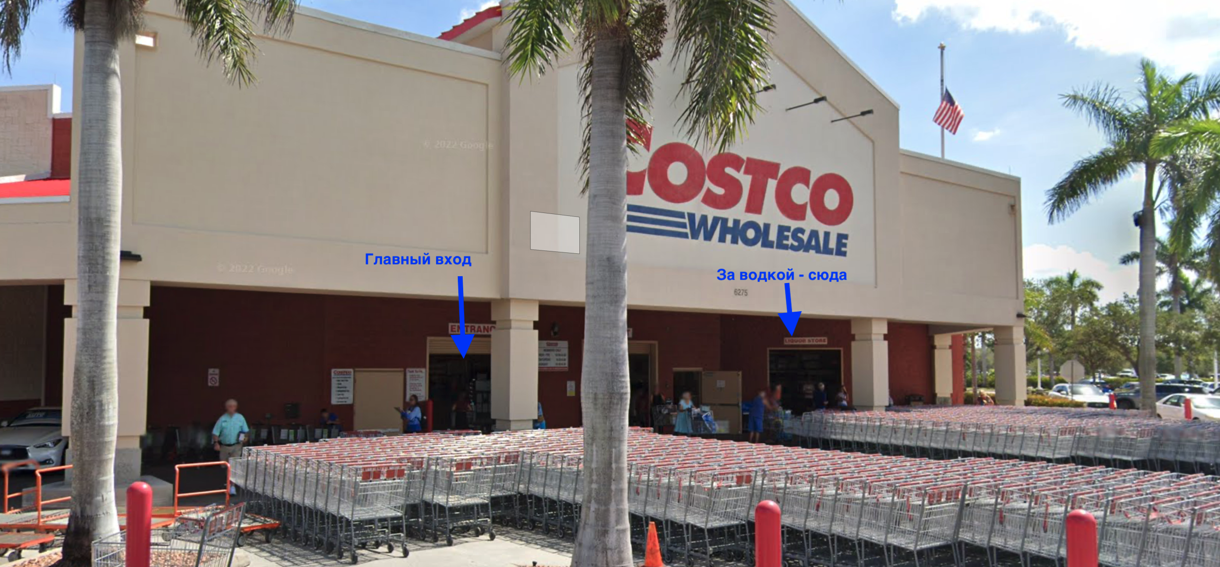 То, что у все есть магазин, а рядом с ним его же дверь в другое помещение, не означает что вы купили все в том же магазине. И да под спецмагазином я понимаю отдельную торговую площадь со своим персоналомпродающим только алкоголь. Да вы можете его купить в Costco - только этот в одельном помещении, с отдельным продавцом и кассой. Даже в привольной Флориде вино и пиво в Costco продается на общей площади, а если хочется чего покрепче, пожалуйте бриться: выходим и заворачиваем в соседнюю дверь - тот же Costco да не тот.