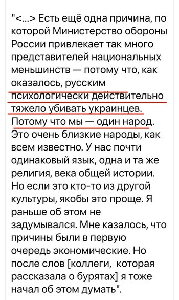 (Вот почему Волков с таким остервенением доказывает, что никто ТАМ Путина не поддерживает: ну, бомжи какие-то, ну, быдло, маргиналы, зэки, националисты, ну, все фсб и фсо и нацгвардия, вся армия, вся полиция, все охранники всех магазинов Пятерочка, все пенсионеры, все бизнесмены, наживающиеся на войне, все оболваненные пропагандой, в итоге и получаем почти всю Россию, за вычетом завсегдатаев Жан-Жаков. Потому, что это убеждение — основа легитимности. Признаться, что вся народная поддержка в России «оппозиционных сил» сводится к от силы 15% — они просто не могут).
