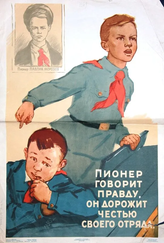 Пограничник задаёт вопрос юному пионеру вопрос: "З якою ціллю повертаєтесь на Батьківщину?"