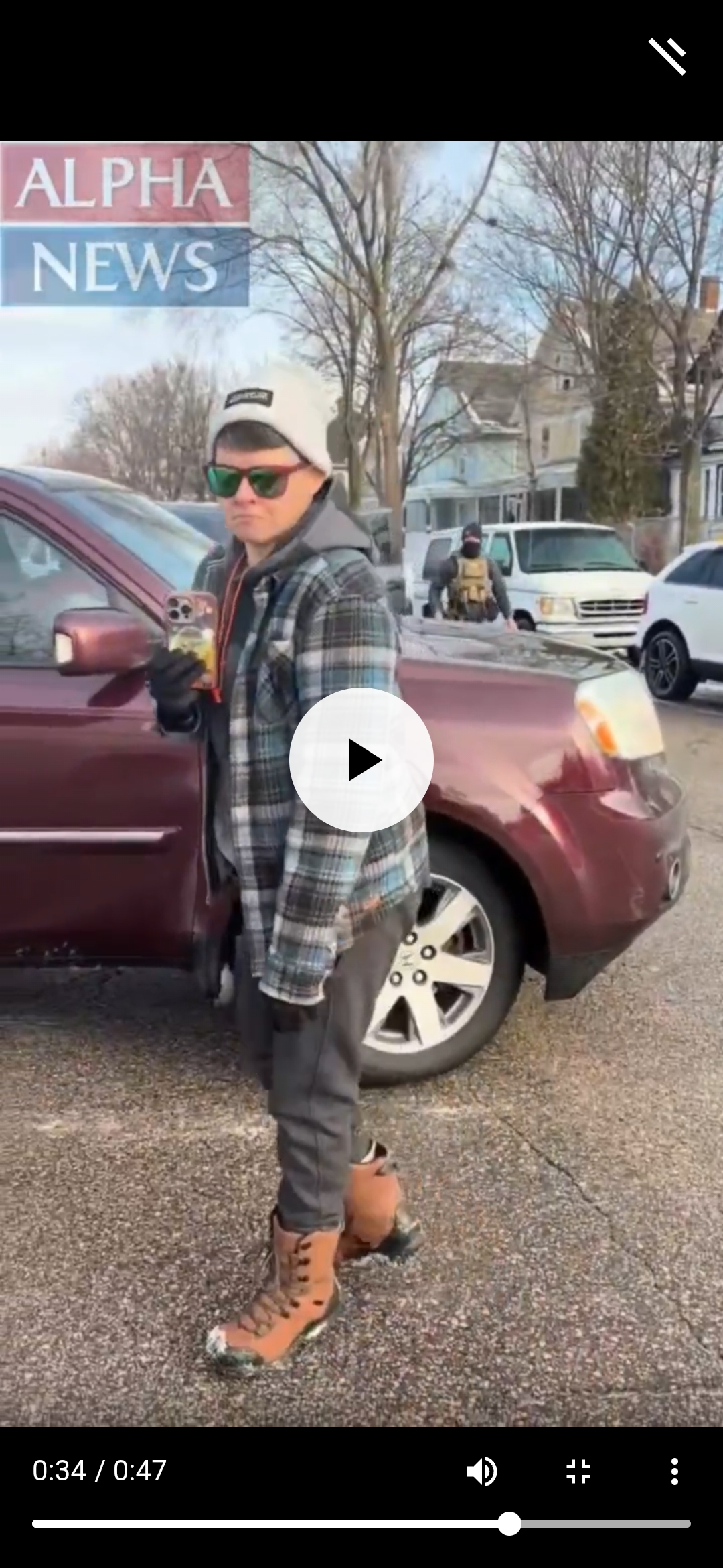 В издании Alpha News появилась видеозапись, сделанная на камеру агента иммиграционной и таможенной службы США Джонатана Росса, который открыл стрельбу и убил Рене Гуд.