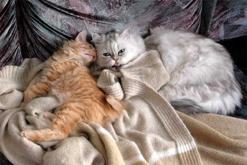 Опять же, замечено, что кошки часто больше привязаны к одному члену семьи. Причем, это не всегда тот, кто их кормит. Меня вот особо обожает один из котов - сам приходит, ложится лапами кверху и подставляет пузо на почесать, другим ни за что. Если работаю дома, всегда сопит рядом. Кошка каждый вечер приходит посидеть на ручках, причем так она вообще не любит, чтоб ее трогали.
