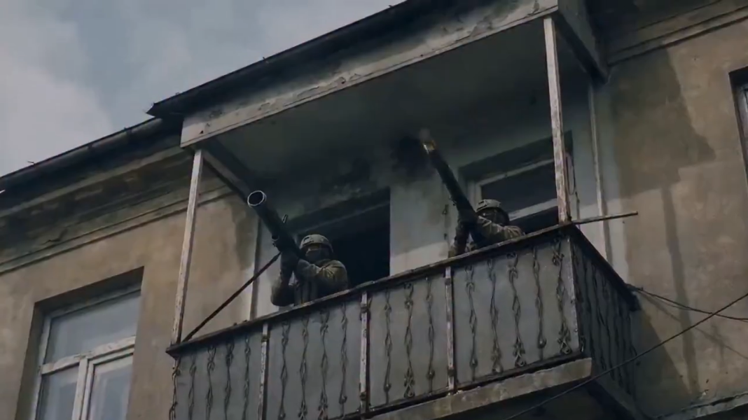 Вторая секунда, выстрел из РПГ с балкона шириной меньше метра - дальше смотреть не стал.