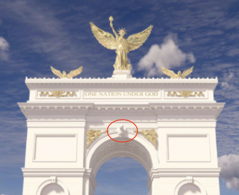 Ну и вопрос. Как я понимаю, большая позолоченная крылатая фигура сверху это Трамп. А кто две по бокам. Наверное Хегсет и Вэнс? Есть другие варианты?