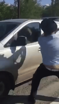 Двери в машине с началом езды блокируются, и это правильно, а значит даже если за ручку удастся ухватиться, это не поможет открыть машину.