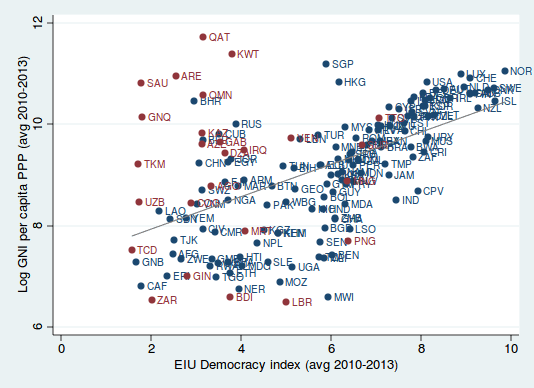 Товарищ просто говорит что есть прямая арифметическая прогрессия между демократией и экономическим ростом. Я этим не согласен. Демократия не про дешовую колбасу.