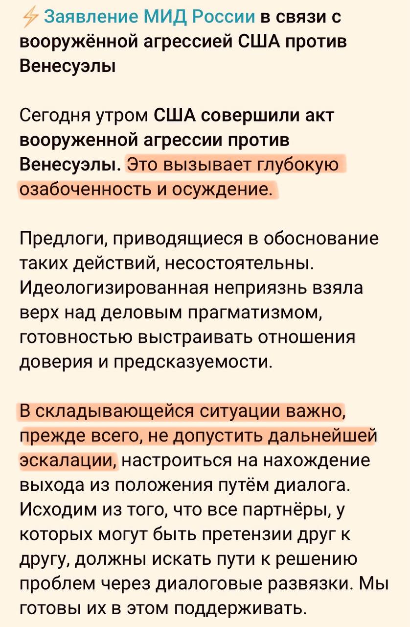 Пост Трампа. Утверждает, что они захватили Мадуро с женой и уже их вывезли из страны. Интересно, куда.