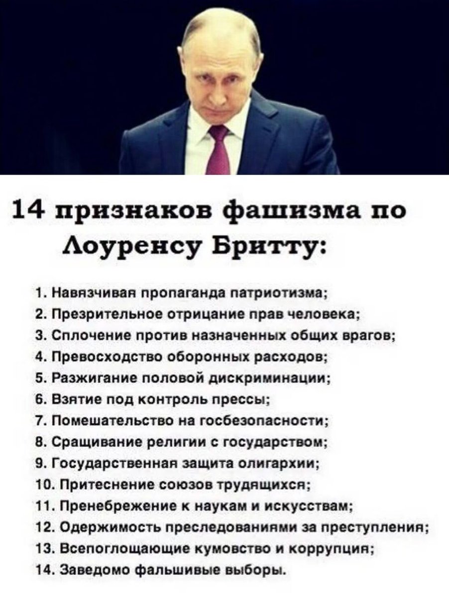 Призыв к жертве и борьбе Тезисы о «труде и жертвах ради Победы», «борьбе добра со злом» — это мобилизационная риторика, характерная для фашистских режимов, где личная жизнь подчиняется «высшей цели».