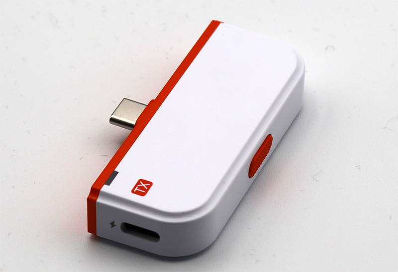 Трансмитер: головка для подключения к Type-C, порт Type-C для подачи питания, светодиод, показывающий режим работы, кнопка сопряжения.