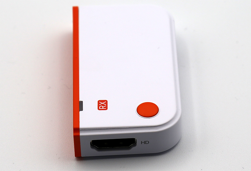 Ресивер: порт Type-C для подключения питания, светодиод, кнопка подключения и настройки изображения, порт HDMI.