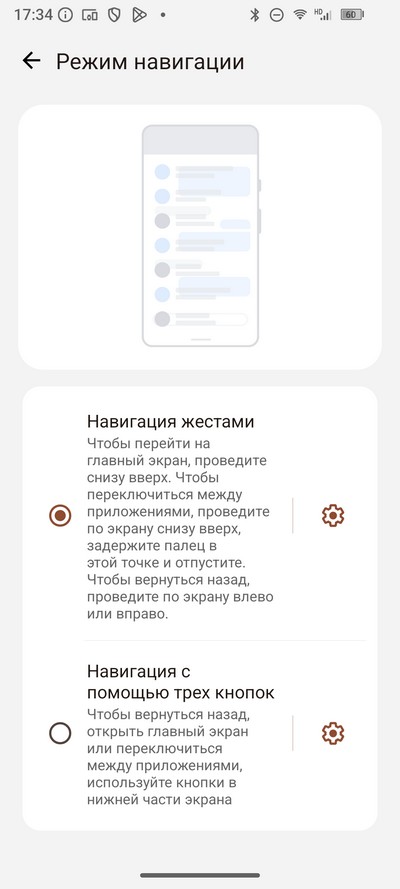 Режим навигации - стандартные три кнопки или андроидные жесты. Также настраивается "умная" кнопка и дополнительные жесты.