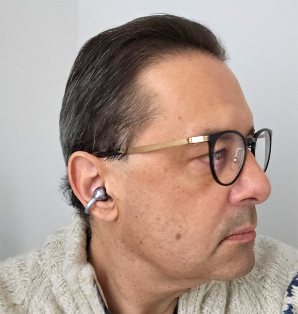 Шарообразная часть наушника должна входить в ухо, управляющая часть находится под ушной раковиной.