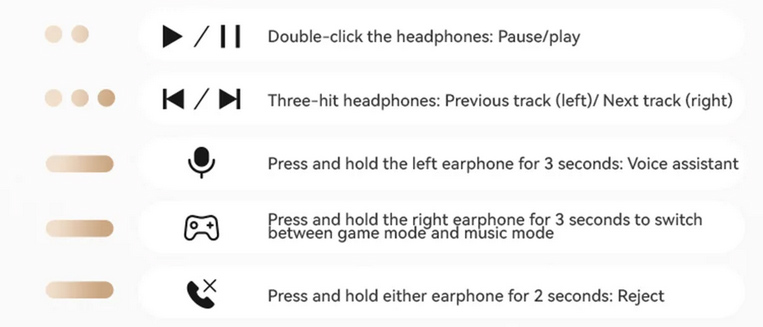 - нажать и удерживать правый наушник в течение 3 секунд - переключение между обычным и игровым режимом