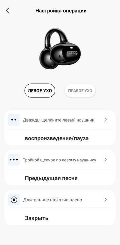 Тут сразу нужно отметить, что нет реакции на одиночное касание, а у предыдущей модели одиночное касание - это играть/пауза, что очень плохо, потому что при этом резко возрастает риск ложных срабатываний. Но здесь - все нормально, на одиночное касание смартфон не реагирует. По умолчанию тут нет возможности регулировать громкость касаниями, однако в приложении Sanag можно переопределять жесты, и там можно добавить возможность регулировки громкости.