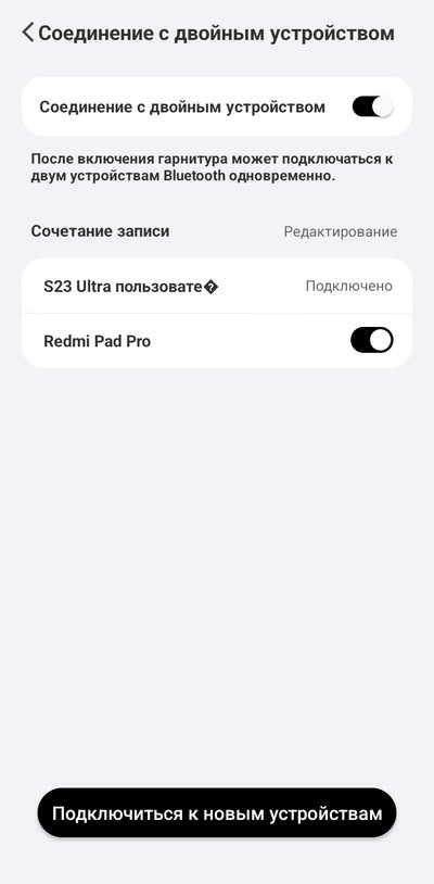 Страница всех подключенных устройств, страница наушников.