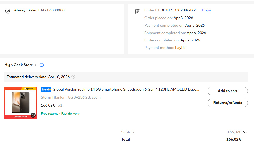На данный смартфон я недавно наткнулся на Aliexpress. Он стоил всего 160 евро, при этом там вполне приличная платформа, дисплей AMOLED 120 Гц с яркостью 2000 нит, 8/256 ГБ памяти, неплохая камера с оптической стабилизаций и видео 4К (стабилизация есть для FullHD), влагозащищенность, поддержка eSIM, Wi-Fi6 и кремний-углеродный аккумулятор на 6000 мАч с быстрой зарядкой мощностью 45 Вт. На мой взгляд, такая конфигурация спокойно тянула на 250-300 евро, и я помнил, что год назад, когда этот смартфон появился на рынке, он в Испании стоил 350 евро.