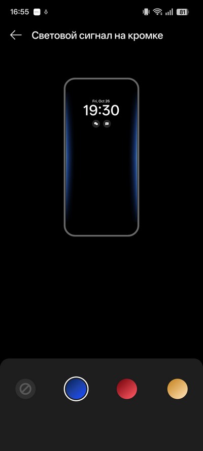 Режим всегда включенного дисплея. Он тут урезанный - включается на 5 секунд или при касании экрана. И если на смартфонах Xiaomi/POCO данный режим можно сделать полноценным, то тут я не нашел как этот режим включить постоянно. Также смартфон умеет показывать световой сигнал на кромке - как и смартфоны Xiaomi. Это пропущенный звонок, пропущенное сообщение и так далее.