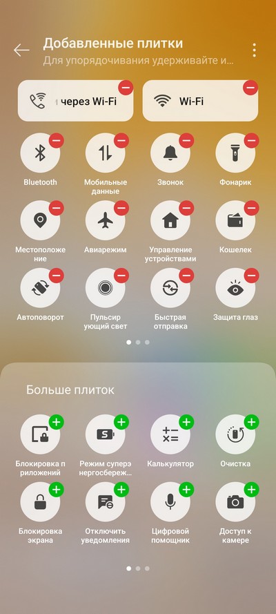 Настраиваемая область быстрых переключателей.