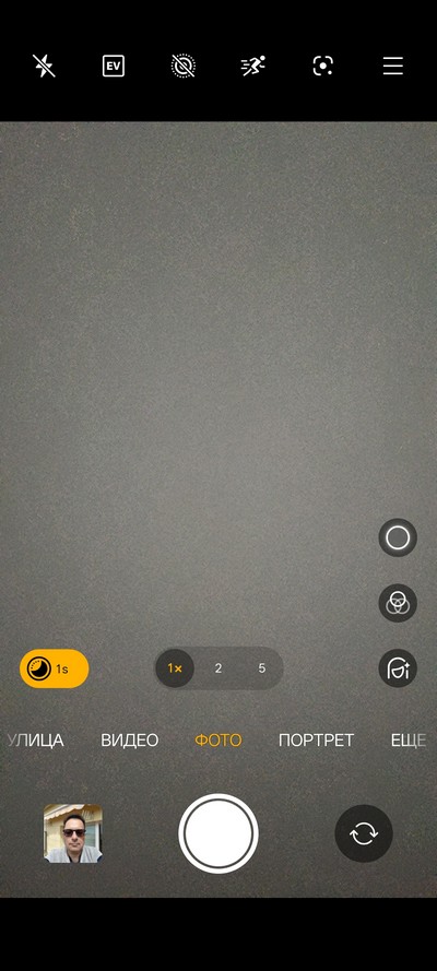 Интерфейс камеры. Снизу переключаются режимы, выше переключение между основной камерой и цифровыми зумами. Также можно вызвать линейку зумов и масштабировать до 10-кратного. Сверху - пиктограммы различных переключателей и пиктограмма меню.
